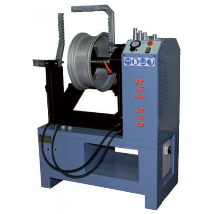 Верстат RSM 240 Comec призначений для усунення дефектів колісних дисків шляхом силового впливу на дефектні зони. З блоком проточки. Діаметр диска 12"-24", швидкість обертання шпинделя 80 об/хв. Професійний верстат для правки сталевих і легкосплавних дисків діаметром до 24" для правки легкосплавних і сталевих дисків легкових автомобілів, мікроавтобусів та позашляховиків.