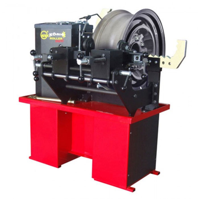 Універсальний дископрав для всіх типів дисків працює за класичною схемою – литі рихтуються гідравлікою, сталеві штамповані – методом двосторонньої прокатки роликами.