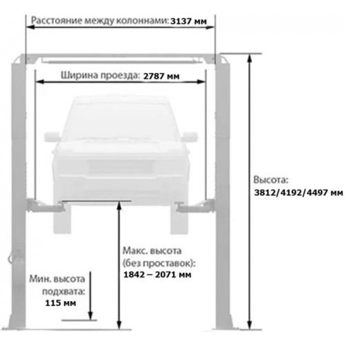Висота підйомника 3812/4192/4497 мм
