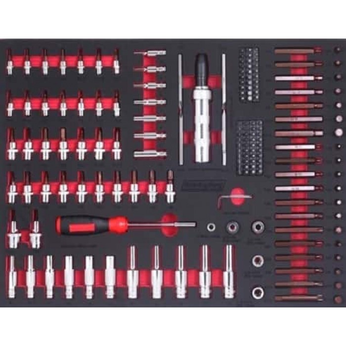 Ложементи модульних наборів виготовлені з довговічного, м'якого, стійкого до агресивних середовищ пористого матеріалу - етиленвінілацетат, який зверху покритий жорстким пластиком з текстурою "карбон". Це нова розробка інженерів та дизайнерів ShiningBerg. Фрезерована форма максимально делікатно утримує інструменти, кожен у своєму відділенні.