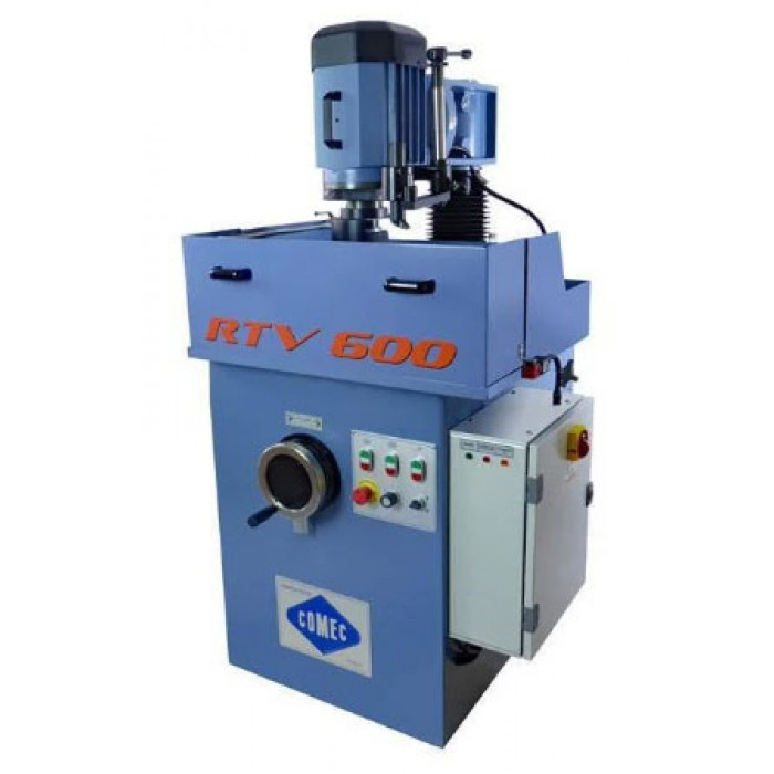 Шліфувальний верстат RTV 600 є найбільш складним рішенням у відновленні дисків зчеплення і маховиків промислових та пасажирських машин. Завдяки своїй гнучкості верстат також придатний для точного шліфування інших округлих деталей, як диски, кільця, обода. Точні прокладки з двоокису вуглецю також можуть шліфуватися за допомогою алмазного кола. Завдяки удосконаленню верстата і використанню міцних матеріалів, як ребристий чавун в основі, головці, поворотному столі та розжарена шліфована сталь в колонах, верстат став більш міцним та жорстким. Поворотний стіл має діаметр 450 мм, а його верхня частина має форму, що дозволяє з легкістю зажимати деталь для обробки. При необхідності він може сполучатися з магнітною плитою. Він обертається завдяки примиканню до точно відшліфованої поверхні, постійно занурюваної в масляну ванну, таким чином знижуючи тертя та знос верстата. Шліфувальний конус приводиться в рух від мотора потужністю 4 кВт для забезпечення швидкого і рівного проточування.