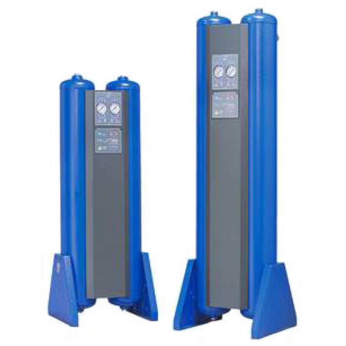 Осушитель сжатого воздуха адсорбционного типа состоит из двух параллельных колонн наполненных гранулированным адсорбентом. Через систему клапанов с электронным управлением, сжатый воздух поступает в одну из колонн, в которой происходит поглащение влаги гранулами адсорбента.