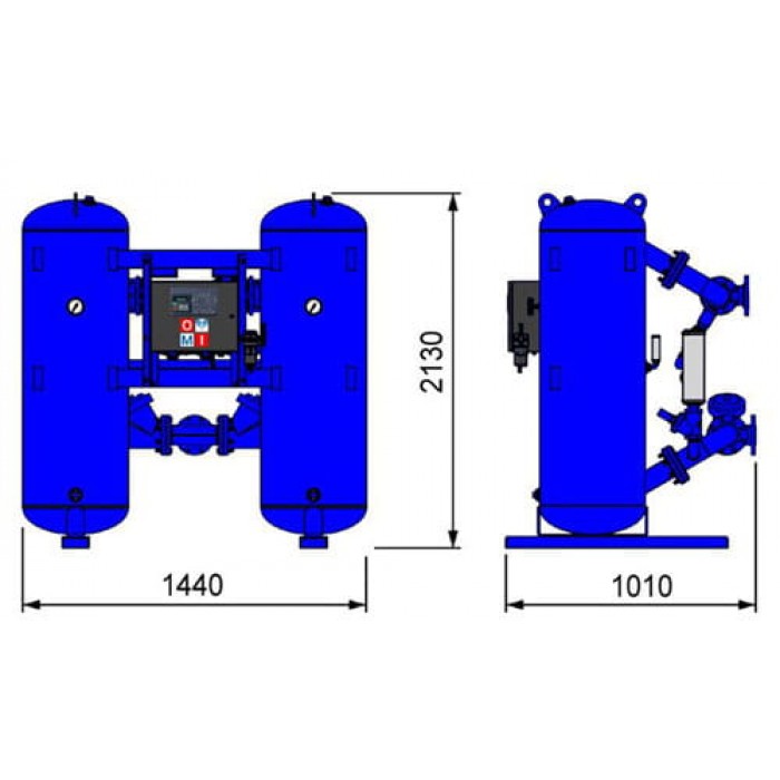 Конструктивно, адсорбный осушитель Omi HL900PRO -70 °C состоит из 2-х, параллельно расположенных друг к другу колонн, наполненных адсорбентом и панели управляющей электроники. Осушение воздуха осуществляется следующим процессом: сжатый воздух подается в одну из колонн, где происходит процесс впитывания влаги адсорбентом, во второй колонне происходит процесс регенерации, т.е. удаление влаги за счет подаваемого воздуха. На процесс регенерации уходит до 15% производимого компрессором воздуха.