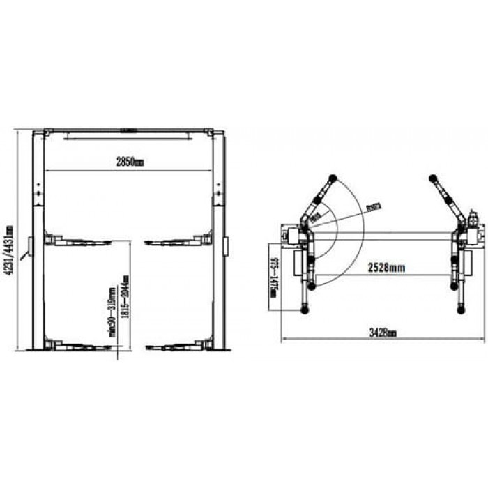 Высота подъемника 4231/4431 мм