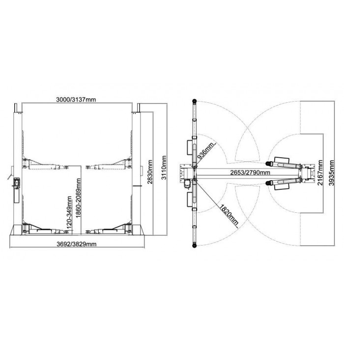 - Удобная регулировка ширины: расстояние между колоннами 3137 мм и 3000 мм.