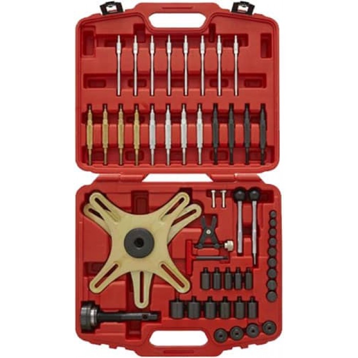 Необходим для предварительного натяжения саморегулируемых сцеплений перед снятием или установкой. Предотвращает деформацию пластин, которая может препятствовать выключению сцепления или вызывать его прокрутку. Имеет инструмент для повторной установки, позволяющий отмотать регулятор сцепления. Также включает набор адаптеров для выравнивания дисков сцепления и цапф. Поставляется в футляре для переноса.