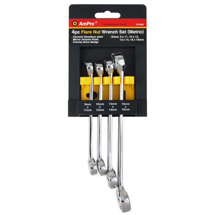 Набор ключей для штуцеров 4 шт. (9х11, 10х12, 13х14, 16х18), AmPro T41991