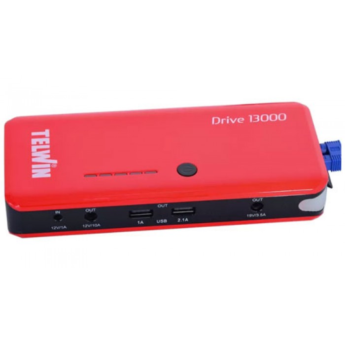 Пусковое устройство Telwin Drive 13000 - это компактное многофункциональное устройство для экстренного запуска АКБ мотоциклов, легковых автомобилей, кемперов, лодочных двигателей и т.д. Модель реализована на базе LiPo аккумулятора, который отличается высокой надежностью и эффективностью. Два USB-выхода позволяют использовать данное устройство как "power bank" для подзарядки различных мобильных гаджетов, фототехники. Надежный помощник, который не занимает много места, поэтому его удобно брать с собой.