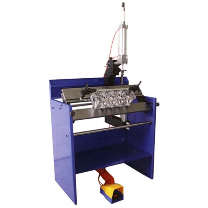 Cтанция для работы с головками цилиндра позволяет проводить весь вид операций на головках цилиндра, таких как разборка, повторная сборка, контроль и проверка работоспособности. Работы проводятся эффективно, быстро и безопасно. Несколько регуляторов гранта, всегда находят лучшее рабочее положение: фактически головка может быть твердо закреплена быстрым зажимом системы, позволяющая вращать деталь на 360 °. Станок оборудован пневматическим цилиндром для того, чтобы работать с клапанами, их сборкой и разборкой: это возможно, благодаря нескольким правилам, множеством рабочих положений, которые адаптированы ко всем видам головок цилиндра; позиции регулируются с помощью ножной педали, которая обеспечивает всегда свободные руки и оборудована регулятором давления. Стандартное оборудование включает ряд различных размеров фиксаторов.