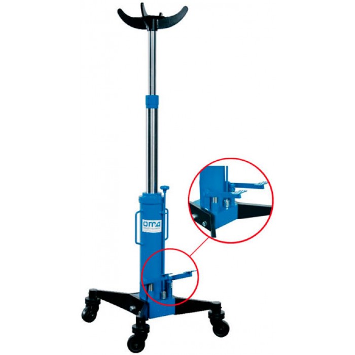 Мобильная трансмиссионная стойка OMA 611 с телескопическим двухсекционным штоком для эксплуатации в условиях грузового автосервиса. Применяется для подъема, снятия, установки и поддержки автомобильных агрегатов (КПП, двигатель и т.д.). Ее также удобно использовать в смотровой канаве. Низкий уровень подхвата и двухступенчатый шток делают данную модель более привлекательной и функциональной. Подъем осуществляется с помощью насоса, приводимого в действие педалью, что обеспечивает удобства направления и центрирования агрегатов, спуск - с помощью специального рычага.