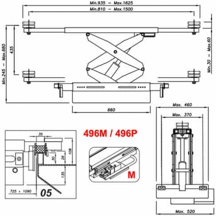 Используется для обслуживания легкового автотранспорта и фургонов из ямы или подъемника. Подходит для подъемников: OMA 521, OMA 522BL.