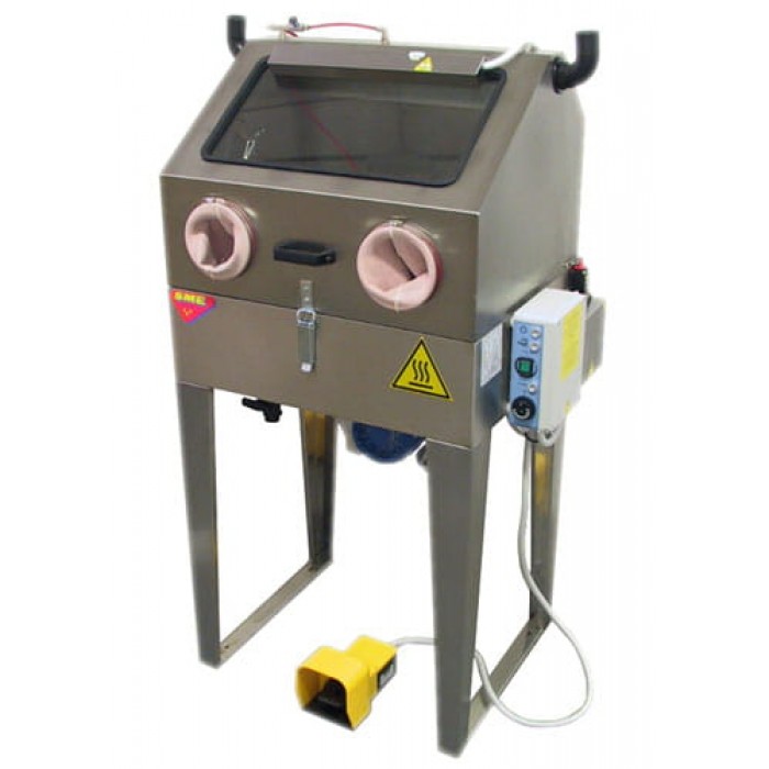 Обработка осуществляется вручную, благодаря встроенным перчаткам в передней части корпуса машины.