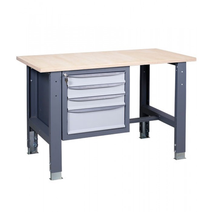 Верстаки и столы рабочие могут использовать для различных типов работ (легкие, тяжелые, точные), так как имеют возможность изменения высоты установки столешницы.