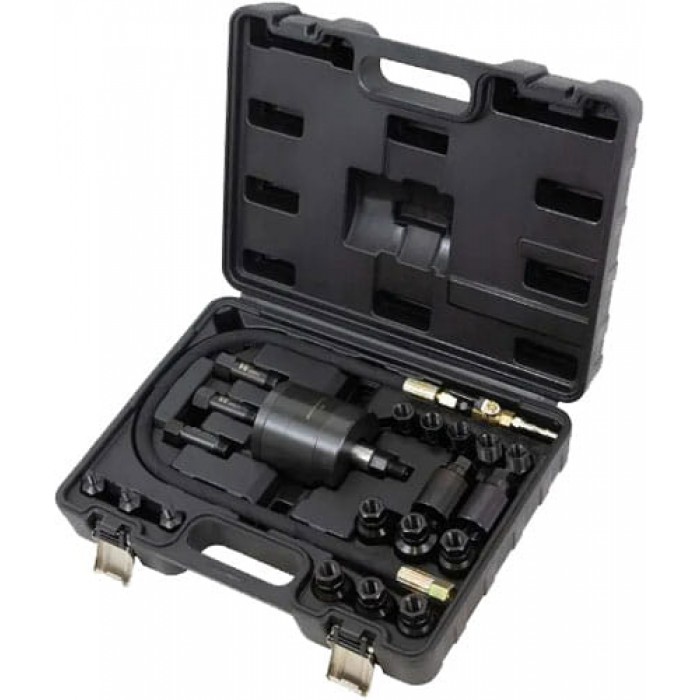 Комплект пневматичного знімача дизельних форсунок з різними перехідниками: М8х1.0, М8х1.25, М8х1.5, М14х1.5, М16х1.5, М17х1.0, М18х0.75, М18х1.5, М20х1.0, М20х1.5, опора M22x1.5, M25x0.5, M25x1.0, M26x0.75, M27x0.75, M27x1.0, M29x1.0, M31x0.75. Готова до використання з компресорами, робочий тиск 6-12 бар, шланг для стисненого повітря W.P32MPa.