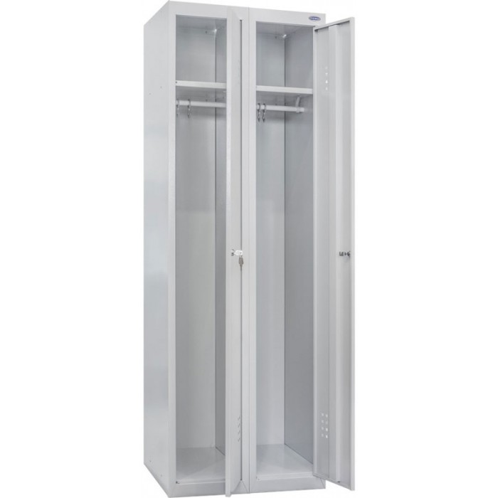 Одягова шафа ШО-400/2 призначена для зберігання змінного одягу в приміщеннях. Шафи одягові дають можливість здійснити компактне та непомітне зберігання верхнього одягу. Одягові шафи потрібні для зберігання особистих речей і одягу працівників, клієнтів або гостей. Також їх часто використовують як шафки для роздягальні. Шафа для одягу ШО-400/2 має стійкість до корозії під впливом вологи та температурних перепадів. Це досягається використанням полімерно-порошкової фарби, яка утворює захисний шар на поверхні сталі. Запобігає передчасному зносу та появі дрібних подряпин. Фарба підкреслює фактуру металу, а світло-сірий колір надає шафкам для одягу виразного вигляду.