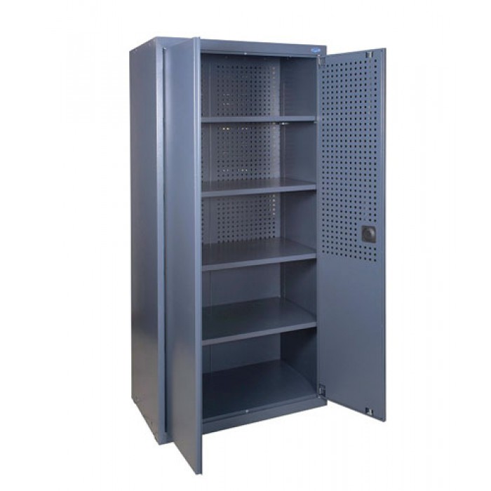 Шафа для інструментів комплектується чотирма полицями, які можуть регулюватися по висоті. Шафа інструментальна комплектується перфорованою задньою стінкою та перфорованими дверцятами. Шафу легко оснастити зручними кюветами, гачками, додатковими полицями.