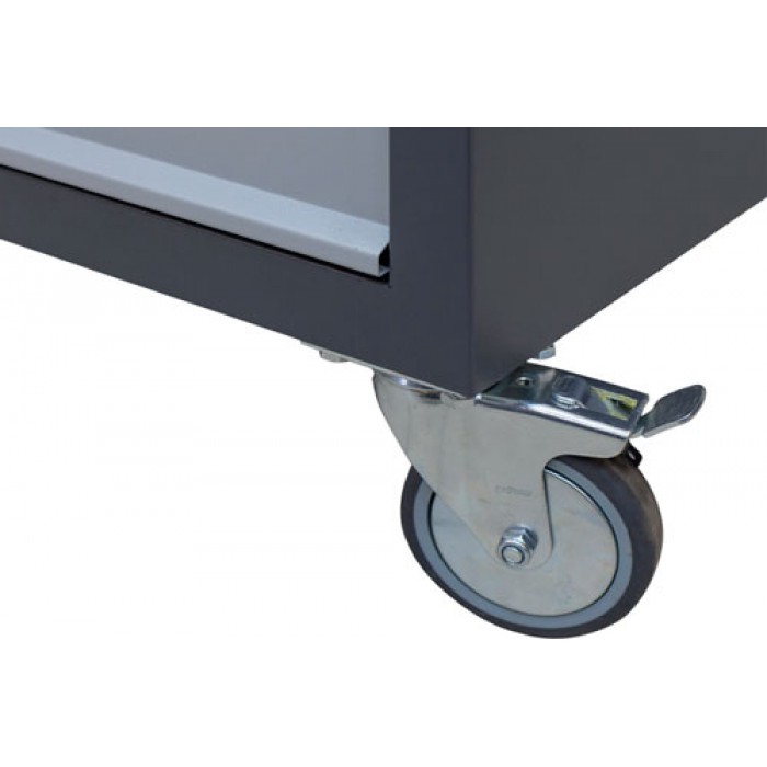 Розмістити промислову оснастку допоможуть 6 ящиків. Вони висуваються на повний розмір, оскільки обладнані телескопічними направляючими. Розміри відповідають габаритам інструментальних ложементів, тому їхнє зберігання стане більш організованим. Щоб метал не руйнувався під дією корозії, він покривається полімерно-порошковою фарбою. Це уберігає матеріали від появи іржі та передчасного зносу.