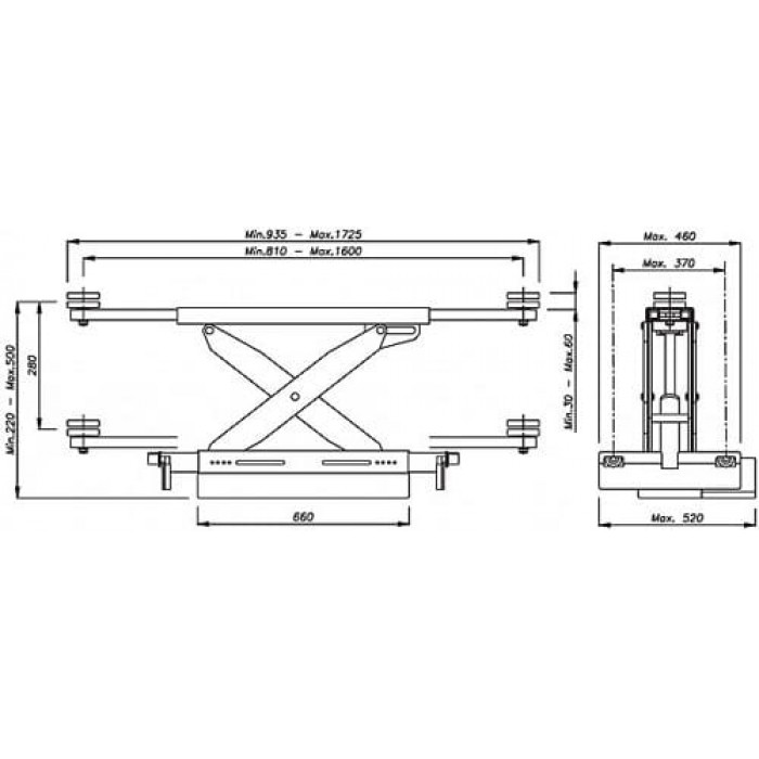 Ножична гідравлічна траверса із ручним приводом OMA 542SR.05. Вантажопідйомність 3 тони.