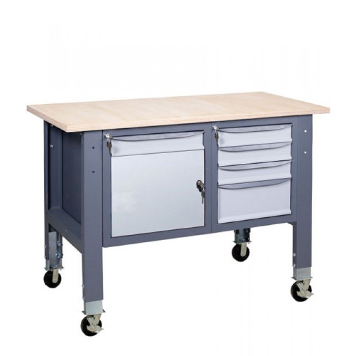 – Блокування колеса запобігає небажаному руху, забезпечує безпечне паркування верстака.